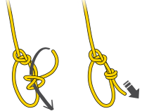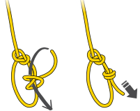 Para amarrarse. Nudo más fácil de deshacer que el nudo en ocho. Atención, llave de bloqueo obligatoria (por ejemplo con el nudo de pescador doble)